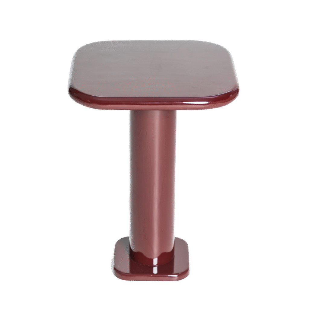 La table F00 se distingue par son design affirmé et minimal : un piètement cylindrique sobre, une base carrée discrète, et un plateau galbé à la finition miroir. Entièrement laquée à la main, elle révèle une teinte profonde et brillante. Sa silhouette compacte et équilibrée en fait une table d’appoint polyvalente, idéale à côté d’un fauteuil, en bout de canapé ou comme table de chevet.